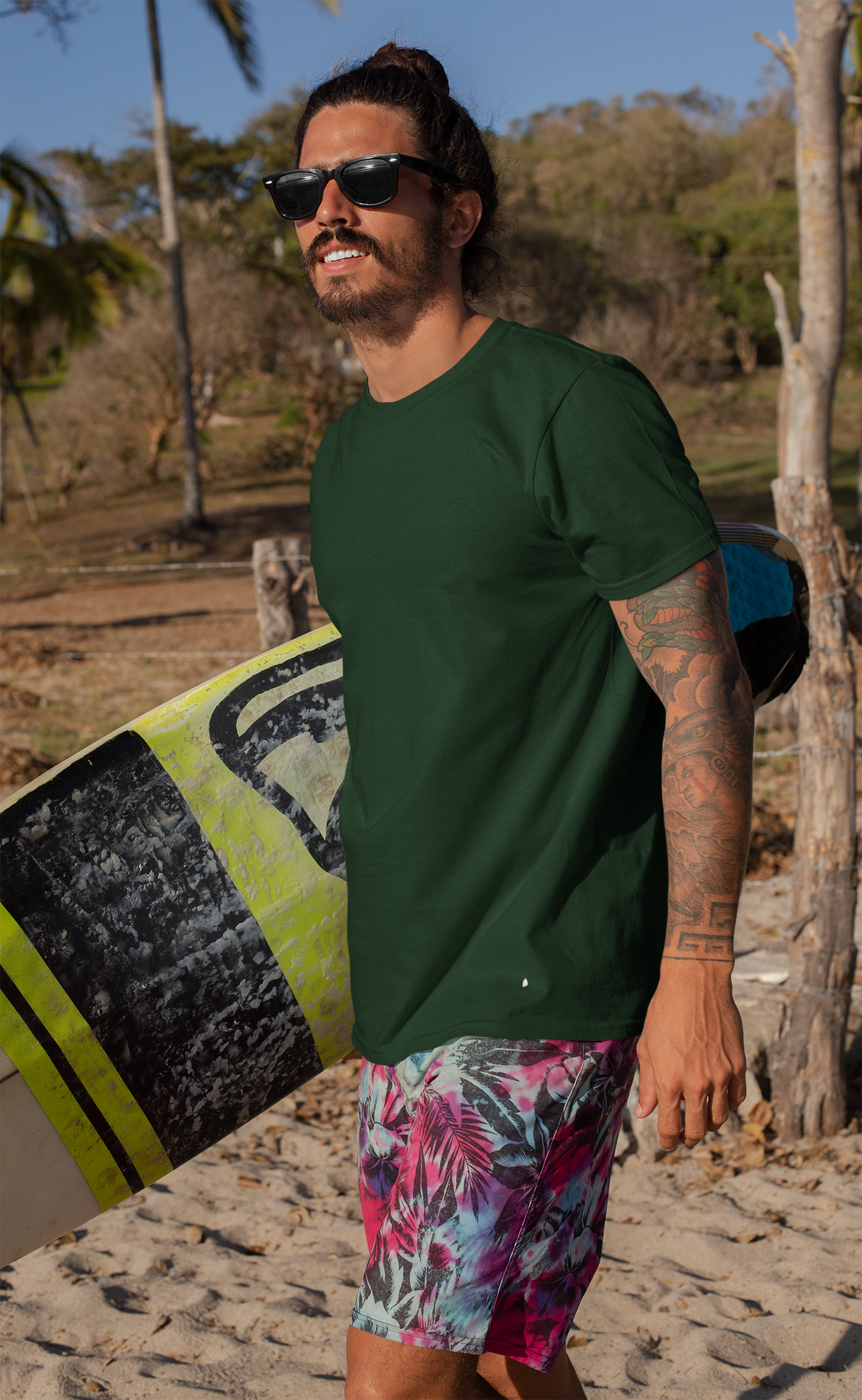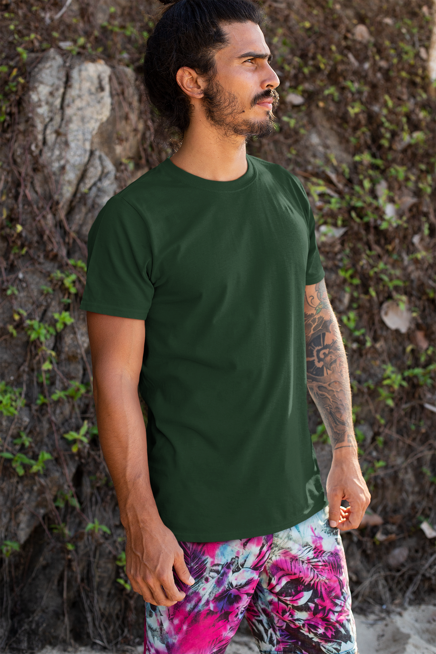 This t-shirt is perfect for casual outings, lounging at home, or layering under jackets and shirts for a more polished look. Its timeless bottle green shade adds a touch of sophistication to your everyday style, pairing effortlessly with jeans, chinos, or shorts. Whether you’re running errands, hitting the gym, or hanging out with friends, this t-shirt has got you covered.
