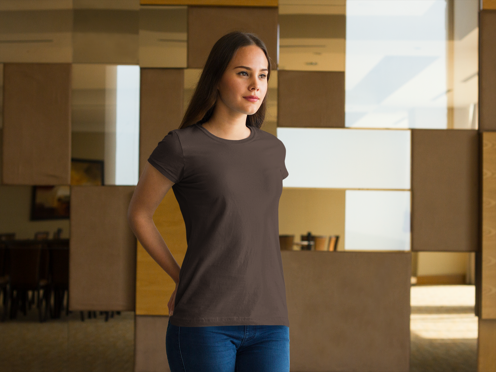 Coffee Brown – Women’s Half Sleeve T-Shirt -100% Cotton & Bio-Washed