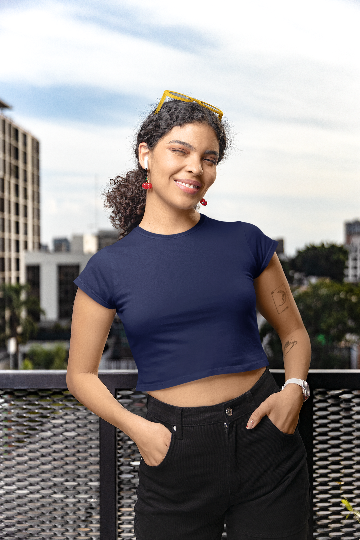 Step into Gen Z fashion with our Navy Blue Baby Tee, designed for both comfort and style. Made from 95% Cotton and 5% Spandex, this tee ensures a perfect stretchable fit while maintaining durability.
